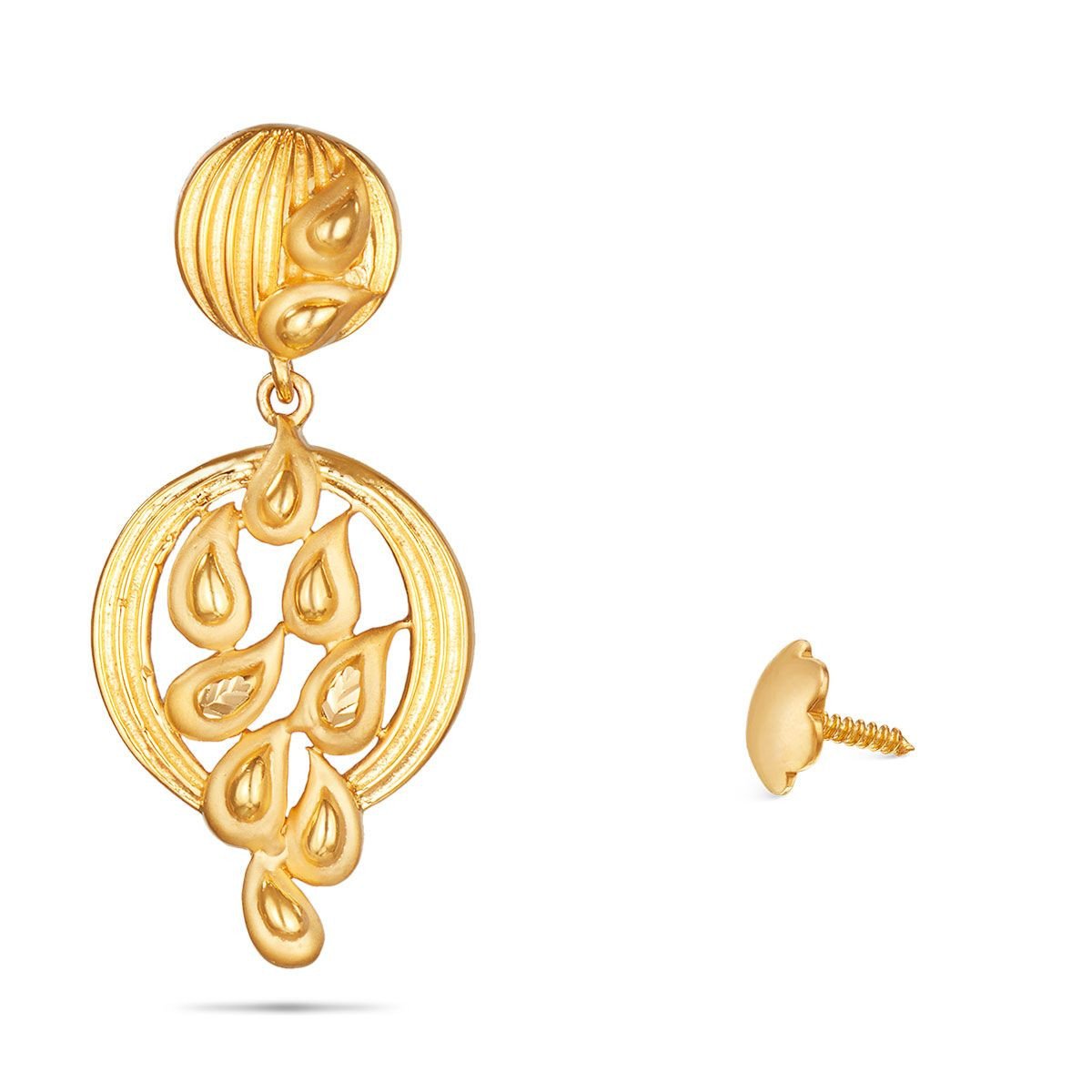 A 22KT beautiful pair of earrings in yellow gold (7.65gms). Delicate, light and understated, these earrings make a quiet, yet strong, fashion statement.
