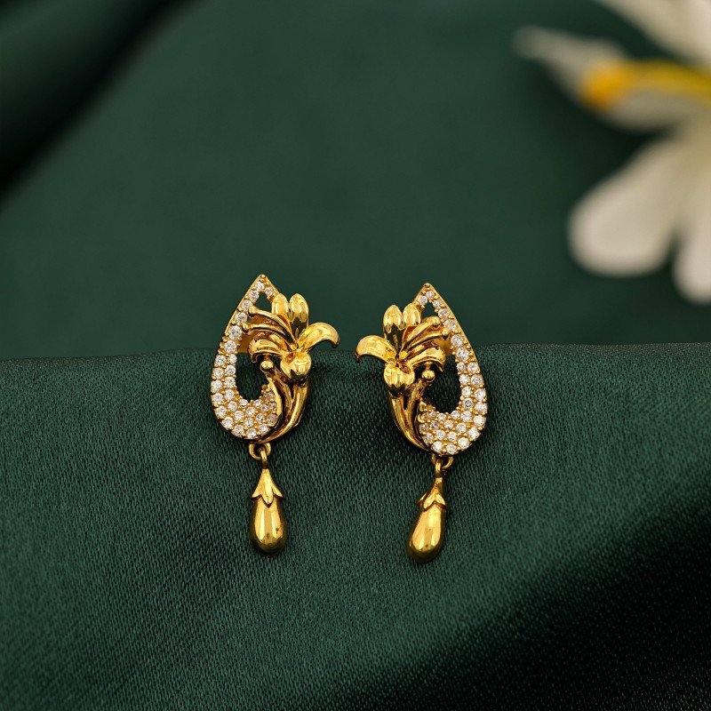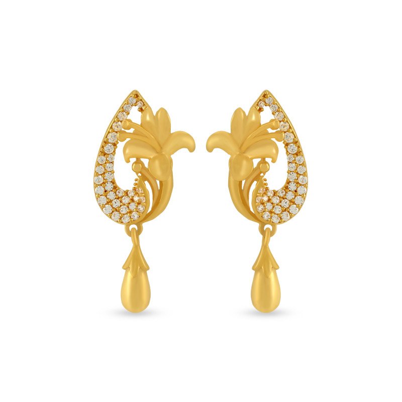 Graceful Flower Motif Gold Earrings